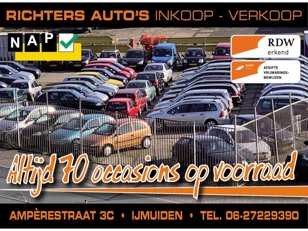 Richters Auto’s gevestigd aan de Amperestraat 3 in ijmuiden is een bedrijf dat regelmatig mooie scherpe geprijsde occasions verkoopt. Al onze auto’s worden afgeleverd met een nationale auto pas (NAP) ,En zo nodig voorzien van een nieuwe apk keuring .Inruil van uw huidige auto is geen probleem. Wij zijn een RDW erkend bedrijf.